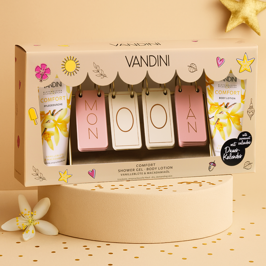Dann hat VANDINI genau das Richtige für dich und für jeden Anlass. Mit unseren perfekt aufeinander abgestimmten und wunderschön verpackten Geschenksets mit attraktiven Zugaben verzauberst du jeden Beschenkten.
